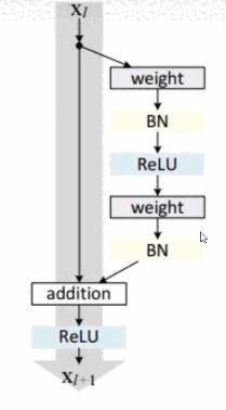 \(X_{l+1}=X_{l}+F(x_{1},W_{l})\) 这个核心公式的意思是,下一层是输入是上一层的输入加上一个东西。