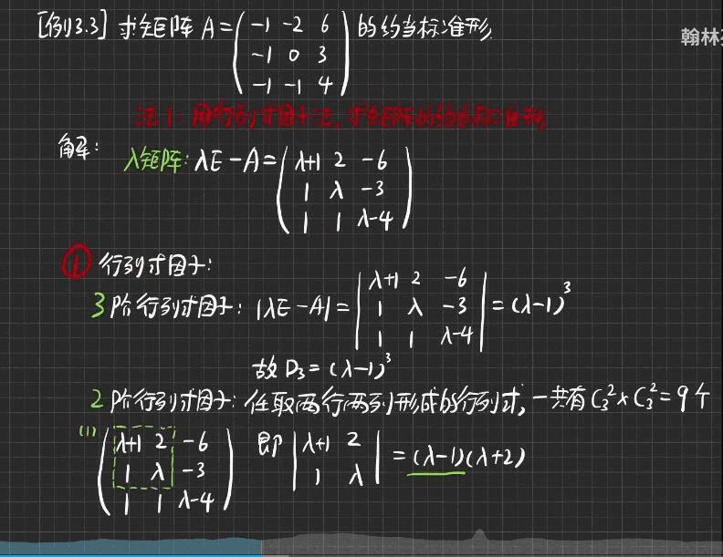如果有 \(d_{4}=(\lambda-2)^{2}(\lambda-1)\) 的话,要拆成:\((\lambda-2)^{2}\) 和 \((\lambda-1)\),一定要拆成两个,否则结果是不对的。
